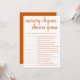 Prueba de rima de enfermería, ducha de bebé o juego de fiesta revelador de sexo (con respuestas a continuación) con un divertido guión con letras a mano. El diseño clásico incluye un moderno superpuesto de tipografía con letras a mano. LLAVE DE RESPUESTA: Un Diamante, Pequeña Jack Horner Cuchara, 3 ratones ciegos, Todos los caballos y hombres, Los chicos, 3 Bolsas llenas, La Vieja Dama en un Zapato, María Muy al contrario, Cordero Pequeño, Canto, Araña, Jill, El Sol, Empleadas domésticas en la cocina Para otros colores o productos a juego, por favor visite la tienda JustFharryn Zazzle diseñador, c/o Fharryn@yahoo.com Todos los derechos reservados. #bohochic #zazzlemade