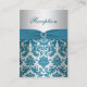 Esta tarjeta de recepción de damasco gris plateado y verde azulado tiene una cinta de estilo satinado IMPRESO y una hebilla de joyas de diamante IMPRESIONADA que coincide con la invitación a la boda que se muestra a continuación. Puede cambiar la palabra "recepción" si necesita que sea una tarjeta de direcciones, tarjeta de alojamiento, tarjeta de registro de regalos, o sitio web o tarjeta de información del boda. Si hay otros elementos coincidentes que necesite, envíe un correo electrónico a niteowlstudio@gmail.com.