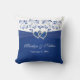 Esta almohada jumbo de 20"x20" boda floral real azul y blanco, que lleva un par de cintas IMPRESAS EN FAUX y una joya de diamante se unieron a los corazones que concuerdan con la invitación a la boda que se muestra a continuación. Personalízalo con los nombres de la novia y el novio y su boda o fecha de aniversario. La parte trasera tiene "Feliz eterno después" en ella que se puede cambiar para decir lo que quieras. Haría un conservadurismo único y especial para la pareja enamorada, o los recién casados. Si tiene alguna solicitud, envíe un correo electrónico a niteowlstudio@gmail.com.