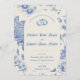 Rich Blue French Floral Toile Floral Wedding Invitation es una manera llamativa de hacer que tu invitación a la boda sea memorable. El rico marfil azul y suave marca la pauta para esta excepcional invitación a la boda. El Toile es un estilo artístico francés que cuenta con dibujos en línea de la naturaleza y de los paisajes de la zona.