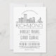 Una invitación nupcial única para un matrimonio que tiene lugar en la hermosa ciudad de Richmond, Virginia. Esta invitación presenta un ilustracion estilizado del paisaje único de la ciudad con su nombre debajo. A esto le sigue la información del día de la boda en un estilo abierto que coincide. En el reverso de la invitación, un color gris profundo complementa el aspecto y la sensación. Todos los elementos individuales de la tarjeta de invitación están desbloqueados, por lo que puede cambiar o agregar cualquier detalle necesario mediante la función de personalización. Puede agregar una foto al reverso y agregarle un filtro en blanco y negro. Además, puede experimentar con los muchos tipos de papel más gruesos y cortes disponibles. Se encuentran disponibles tarjetas RSVP, bandas del vientre, bolsas de tote y más. ¡Diviértete siendo creativo y hazlo tuyo!