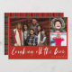 Collage de fotos de familia tres "Riéndose todo el camino" Navidades rojos lucen tarjeta de vacaciones de diseño. Personalizado con tres de tus fotos favoritas, saludo y apellido.
