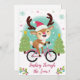 Rindeo lindo en tarjeta de Navidades de bicicleta