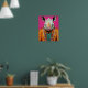Funky Hippo estampado de arte de moda con colores vibrantes y fondo rosado caliente.