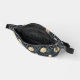 Este bolso de trasero presenta un elegante patrón de ráfagas de sol doradas radiantes que brillan brillantemente contra un fondo azul profundo y de medianoche, que evoca la majestuosidad del cielo nocturno. Delicadas olas celestes fluyen con gracia entre los soles, adornadas con estrellas brillantes y sutiles senderos de cometas, creando una sensación de movimiento y belleza etérea. generativo y congruente