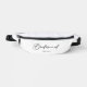 Esta elegante y sencilla riñonera de dama de honor presenta tu nombre debajo de una tipografía negra elegante. Personaliza estos regalos elegantes y modernos para tu boda como la despedida de soltera.