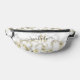 Negro blanco de mármol dorado chispeante Monograma Fanny Pack. Personaliza la bolsa de accesorios con tu nombre. Los destellos de oro de mármol blanco y negro brillan. Elegante textura de mármol blanco y negro con acento de copos espumosos purpurinas dorados. *foto de chispas, ¡no purpurina real!