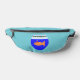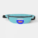 Este fanny pack contiene un divertido naranja Navidades de peces de colores usando un sombrero festivo de santa. El pez dorado está nadando en el agua azul de su pecera. El pez ha decorado la parte superior del tazón con banderas rojas y verdes que deletrean el mensaje "Merry Fishmas". Este divertido pescado de temporada está listo para un gran fiesta de Navidades.