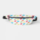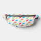 Una tiburón adorable con un patrón de tiburones coloridos sobre un fondo blanco. Simplemente añada este paquete de patineta a tu carrito, llévalo a casa, y luego ten un día de sharktacular! Cute Colorful Shark Pattern Fanny Pack Diseño de vacaciones | ©Melissa Patton - Diseñador/Ilustrador