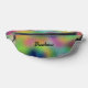 Ready to add a spring of nature's colors. Elevate your style with a forest of rainbow colors. Accessorize with this colorful rainbow belt bag. This belt bag features blueish, pinkish, and yellow colors. Perfect fanny pack for everyday use. Great for women, teens, and girls who love to add adventure and style to their outfit. Add a special touch to your fanny pack by personalizing it with your own text.