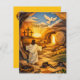 Celebrate the Resurrection with this elegant 4.25" x 5.5" flat card. Featuring a stunning 3D papercut-style illustration of Jesus walking out of the empty tomb, this card captures the victory of Easter morning with broken chains and a radiant sunrise. The unique "layered paper" effect creates a sophisticated look, perfect for short messages of faith or invitations to your family brunch. The back is fully customizable for your personal message, family name, or a favorite Bible verse. Includes a premium white envelope.