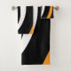 Este diseño presenta formas suaves y fluidas en naranja, blanco y negro. Parece pétalos o olas, lo que le da un aire audaz y moderno.
