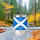 Coma, bebe y celebra a Robbie Burns the Inmortal Bard y al hijo favorito de Escocia con este audaz y brillante vaso de vino sin tallo de acero inoxidable del 25 de enero, que incluye el Saltire (Cruz de San Andrés) y el diseño simple pero llamativo azul y blanco de la bandera de Escocia. Diseño © W.H. Sim. Ver más en zazzle.com/expressionsoccasions
