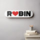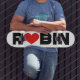 El nombre de Robin con la letra o reemplazado por un corazón de amor rojo. Los colores se pueden cambiar.