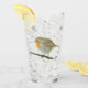 Tumbler de vidrio con foto de robina europea (Erithacus rubecula) colgada en una delgada rama