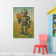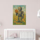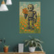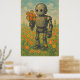 Este adorable robot de estilo retro, con flores, fue creado con IA y editado con texturas reales. Es un poster divertido para tu propia pared, una habitación para niños o un regalo único.
