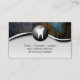 Los diseños del PAM ©2011. Represente su odontología de la familia o práctica del orthodontist con esta tarjeta de visita con clase y profesional, dental. Esta tarjeta ofrece una silueta blanca del diente en una esfera blanco y negro que coincide una frontera metalizado torcida. El fondo se comprende de una impresión coloreada fresca remolinada de la textura de la roca al lado de un fondo blanco.
