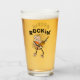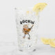 El texto de Rockin con un rock feliz tocando una guitarra es un diseño musical divertido para músicos, estudiantes y profesores en cumpleaños y vacaciones.