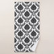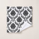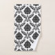 A vintage style decorative damask mixed size surface pattern influenced by rococo classical design in black detail on a white background.