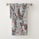 Este diseño incluye vaqueros con caballos y cuerdas. El fondo es un patrón de bandana ligera.