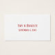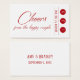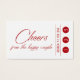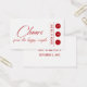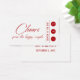¿Quieres ofrecerte a tus clientes una forma de tomar varias bebidas alcohólicas durante tu recepción o fiesta sin estar comprometido con un bar abierto? ¡Estos 3 boletos de bebidas alcohólicas podrían ser ideales para usted! En una hermosa, delgada y inclinada fuente de escritura, el superpuesto gráfico de la tipografía roja de cereza dice "Saludos de la feliz pareja". Rotado, a la derecha y colocado entre líneas rojas delgadas, se encuentran las palabras "Redeem at the Bar"; este texto es editable. A la derecha se han añadido tres círculos numerados para que los clientes puedan sacar sus tarjetas en el bar, ya que se sirven hasta tres bebidas complementarias. El otro lado tiene campos de plantilla configurados para sus nombres y fecha. // 78 // Diseñado por Melody Watson para la Muserie de Papel.