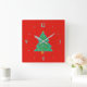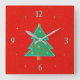 Reloj moderno de bonito en rojo con un árbol de Navidad simplista verde/acuático.Este reloj tiene números acuáticos y está disponible en formas redondeadas y cuadradas. Ver más relojes en Oricourt.