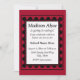 Celebra el paso de tu hijo a la universidad con esta adorable invitación de fiesta de color rojo oscuro con puntos negros de polka "fuera a la universidad".