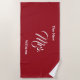 Esta toalla de playa roja de rubíes dice "a la nueva señora" en la escritura blanca. Usted puede personalizar la toalla de playa con el nuevo nombre de la novia.