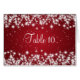 Del "diseño elegante número de la tabla" del boda con el cielo estrellado del invierno de la chispa de la noche romántica del efecto en fondo rojo, y texto de encargo del número de la tabla. Impresione su familia y amigos con este diseño elegante y moderno. ¡Completamente adaptable! Fácil de utilizar y fácil personalizar. ¡Orden hoy!