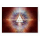 Mandala roja detallada con el triángulo blanco en el centro, sobre un meditator que se sienta. Por Daniel B. Holeman