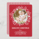 Vintage temático con los elementos a mano, estos navidad precioso que saluda las características acebo caprichoso, conos del pino, copos de nieve y foto la su de familia de alrededor del invierno floral y con un estilo moderno simple de la tipografía para mostrar el saludo y la foto de su familia. Coordinación del modelo rojo y blanco de la raspa de arenque en la parte posterior. El esquema de color rojo blanco y rico del día de fiesta es perfecto para cualquier tema del invierno.