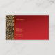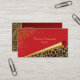 Tarjeta de visita elegante hecha en rojo, con los gráficos de una esquina inferior encrespada dorada, en el frente, con un modelo manchado marrón y negro del jaguar, debajo de él. Los flourishes dorados elegantes adornan el frente de la tarjeta. El texto amarillo, en el frente y la parte posterior, está listo para personalizar a sus necesidades. Precioso destaqúese la tarjeta que embala una gran impresión.