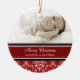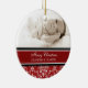 Las Felices Navidad abuela y abuelo adornan personalizable con su propia foto de familia en el rojo elegante, modelo floral clásico blanco y negro del damasco. Un regalo elegante del navidad para el abuelo y la abuela estas vacaciones.