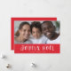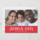 Esta alegre tarjeta de Navidad dice "Joyeux Noël", o Feliz Navidad en francés, con tipografía moderna y caprichosa en blanco sobre un festivo rojo. ¡Hay espacio para la foto de tu familia favorita!