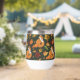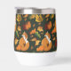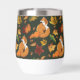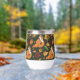Un zorro rojo con calabazas, bellotas y hojas de otoño en un fondo de verde oscuro