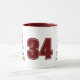 Rojo marrón mantener tranquilo el regalo de tazón de café de cumpleaños 34. Divertido mantengan la calma y lleven el meme a los veintiocho años. Haz tu propia taza específica de tu edad graciosa con número de edad personalizado. Bombas tipográficas de Guay para hombres y mujeres. Plantilla moderna de tipografía con corona. Color personalizado en el interior y manipular.
