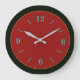 Un diseño evocador de 24 horas. Borde de verde oscuro y centro de rojo con borde dorado. ¡Los números azul/ Aqua completan este diseño! Disponible en forma cuadrada o redonda.