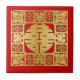 Rojo y tejas dobles chinas de la felicidad del oro. Símbolos chinos afortunados.