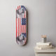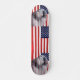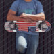 Patineta con el diseño de la bandera de los Estados Unidos y una mano de paz, poder y amor.