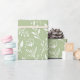 Delicado patrón botánico con hojas, bayas y flores blancas sobre un fondo verde sabio a la moda. Este diseño de inspiración escandinava transmite un toque de encanto vintage, creando una estética tranquila e intemporal. Un diseño maravilloso para aquellos que aprecian la elegancia y la belleza natural.