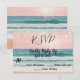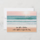 Asegure a sus invitados que están listos para su día especial con esta elegante tarjeta de respuesta con tema de playa. Con un diseño coordinado inspirado en el océano con acentos de purpurina rosa en la parte superior e inferior, esta tarjeta de respuesta coincide perfectamente con la tarjeta de "Save the Date". La purpurina rosa brillante añade un toque de glamour y sofisticación, perfecto para una ceremonia costera o boda en un destino. Con un diseño simple y elegante, sus invitados pueden responder fácilmente a su encantadora celebración frente al mar. Una cita sincera en el reverso añade un toque personal, creando una experiencia memorable para sus invitados.