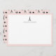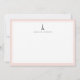 Nuestras tarjetas planas de diseño de papelería personalizadas inspiradas en la moda parisina cuentan con un borde rosa pastel, un minúsculo ilustracion de la Torre Eiffel negro, y su nombre, monograma o elección de personalización. Las tarjetas se adaptan a nuestro modelo de París romántico, con pájaros pequeños, croissants, macarons, rosas, tazas de café y la torre Eiffel sobre un fondo rosa pálido y rosa.
