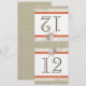 La apariencia de arpillera y encaje impresa en número de mesa DIY. Cambie el número para cada mesa y ordene individualmente para que los números de mesa coincidan con las invitaciones. Doble por la mitad para hacer una tarjeta de número de mesa de 4" x 4 5/8".