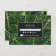 Un diseño audaz y fresco con hojas de palma pintadas y un borde dorado falso para un tema de verano y boda tropical.