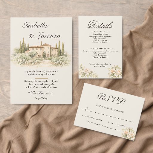 Romantic Italian Tuscan Villa Wedding InvitationsDiseñado por Phyllis Waugh