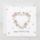 Una hermosa tarjeta de San Valentín con un corazón delicado hecho de flores blandas rosas y blancas con hojas verdes mudas. Con diminutos corazones acuáticos y el mensaje "Feliz Día de San Valentín", esta carta es perfecta para expresar amor y afecto de una manera elegante y romántica.