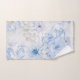 Un elegante y romántico conjunto de toallas de baño con flores azules.