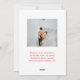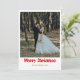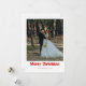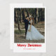Celebra tu primera Navidad como pareja casada con este elegante diseño que presenta un texto decorativo de "Feliz Navidad" en rojo rico. La parte delantera muestra la foto de su boda y el nombre de su familia para darle un toque cálido y romántico. La parte trasera tiene un fondo blanco limpio con espacio para tu mensaje personal y otra foto favorita. Perfecto para recién casados que quieren compartir amor y alegría festiva.
