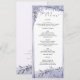 Esta elegante carta de bodas está bellamente diseñada con delicados florales acuáticos en tonos violeta y gris, creando un encanto vintage e intemporal. Perfecto para las recepciones románticas, la carta incluye entrantes, entrantes, platos de carne, pollo o pescado y un postre boda delicioso. Las antiguas obras de arte floral y la elegante tipografía hacen de este menú no sólo una guía de restauración funcional sino también un toque de queda que complementa a toda la suite de papelería boda. Con su tema acuático de estilo antiguo, sus detalles botánicos y su sofisticado diseño, esta carta le da un toque de elegancia y refinamiento a la mesa boda.