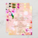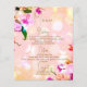 Bonito y elegante diseño de menú boda floral con ramo de orquídeas sobre fondo rosa melocotón. El texto es totalmente personalizable.